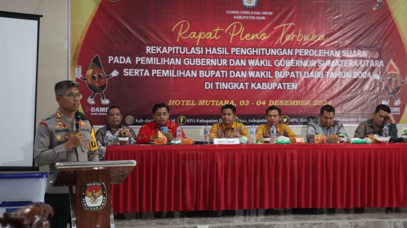 Dairi Bara News- Komisi Pemilihan Umum (KPU) Kabupaten Dairi telah menyelesaikan rapat pleno rekapitulasi di tingkat Kabupaten yang diselenggarakan di Hotel Mutiara Kecamatan Sidikalang Kabupaten Dairi, Selasa (3/12/2024).